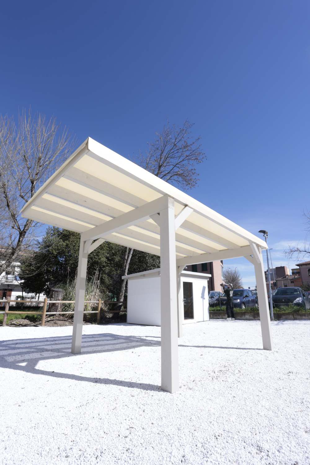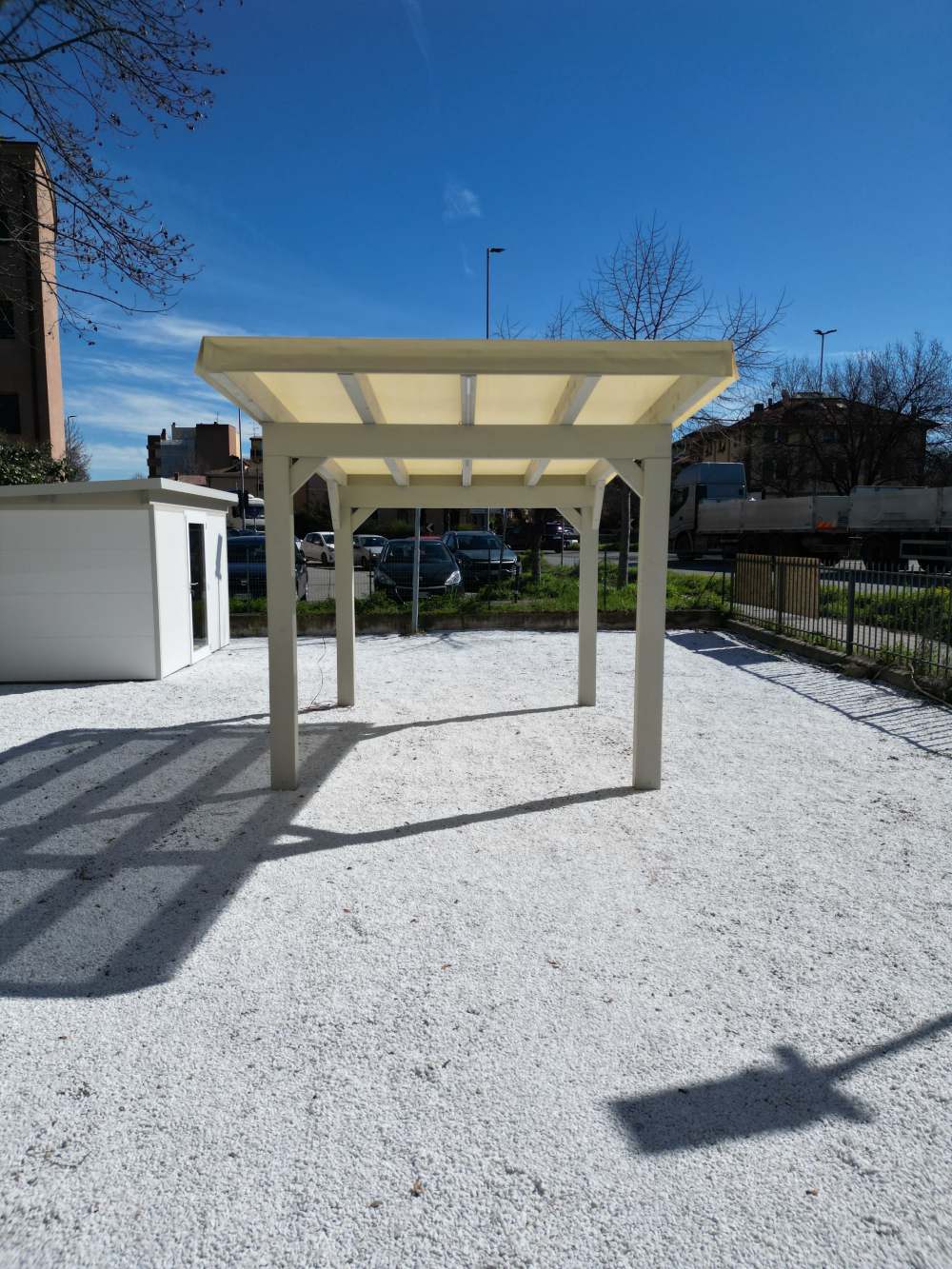 Dado Legno è una delle realtà protagoniste nel settore delle forniture in legno per il centro e nord Italia, capace di soddisfare ogni tua esigenza. Per proteggere la tua auto dalla grandine e dalle intemperie, offriamo box auto su misura con copertura in telo PVC traforato antigrandine, fissato lungo tutto il perimetro con bacchette in alluminio. Grazie a questa soluzione innovativa, la struttura rientra nell’edilizia libera e non necessita di permessi.